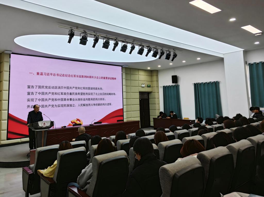 高志辉教授重温了习近平总书记在纪念红军长征胜利80周年大会上的重要讲话精神,强调理想信念是党和红军战胜困难的根本力量。他以“红军不怕远征难”为主线,回顾了红军长征在甘肃的重要历程,包括红二十五军率先抵达陕甘、中央红军攻克腊子口、三大主力会师等关键节点。最后,他结合新时代背景,阐释了弘扬长征精神、坚定“四个自信”、走好新时代长征路的重要意义。