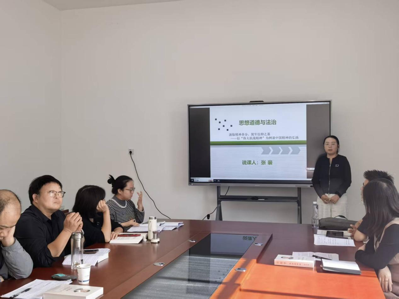 学院思想道德与法治教研室组织开展以“伟大抗战精神融入思想道德与法治课程”为主题的集体备课会。备课会上,张丽娟紧扣教材对抗战精神融入课程核心内容进行了详细解析,并就融入方法和形式,以及注意事项进行了一一介绍;张裴聚焦《思想道德与法治》第三章“继承优良传统,弘扬中国精神”,从教材分析、学情分析、教学目标、教学重难点、教法学法、教学过程和板书设计七个方面进行了说课展示;教研室其他教师围绕两位老师的解析与说课和听评课情况,进行了深入探讨,分享了各自的教学思路、案例选取、方法创新。通过以上集体备课环节,教师们彼此印证了自己的教学设计理念,拓宽了教学视野,提高了育人本领,增强了育人自信。